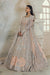 Bringing to life the quintessential Élan romance and charm, this bridal pairs a long exquisite shirt in pétillant coral, heavily embellished with hand-sewn slivery floral motifs and filigree with a laboriously embellished net dupatta, finished with traditional extensive borders in varying shades of light Sirocco.